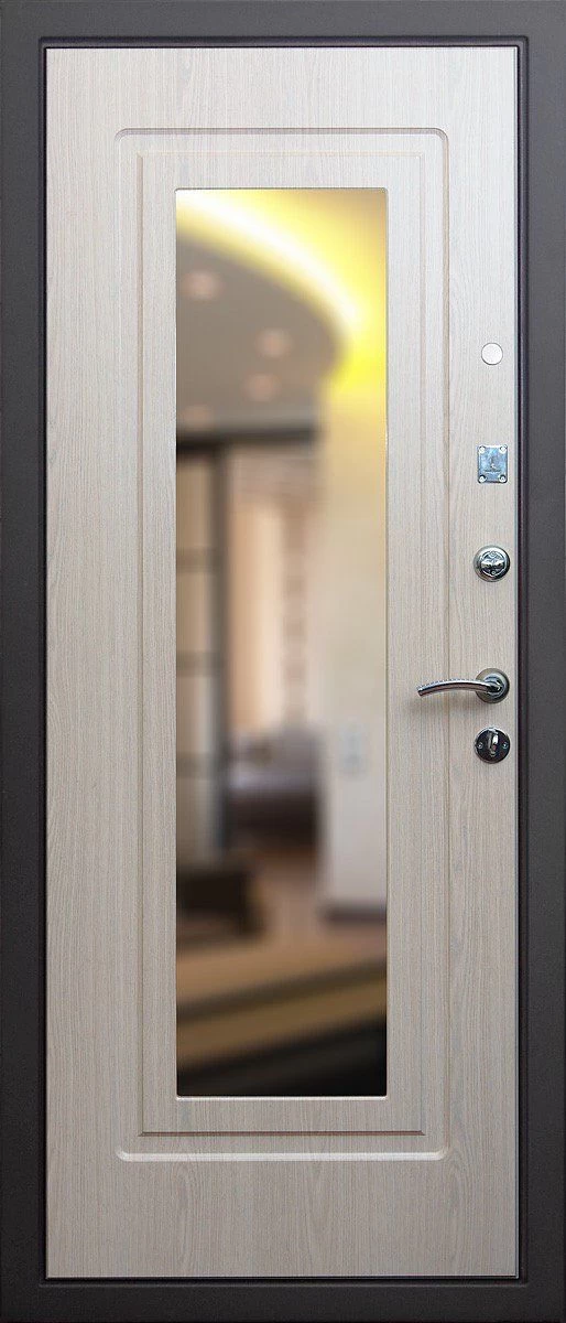 Прочная металлическая Дверь с зеркалом DZ385 по цене от 30 000 руб. под заказ в любой комплектации. Вы можете выбрать материал, замки, цилиндры и многое другое. Производим сами! Быстрая доставка и установка в Ялуторовске.