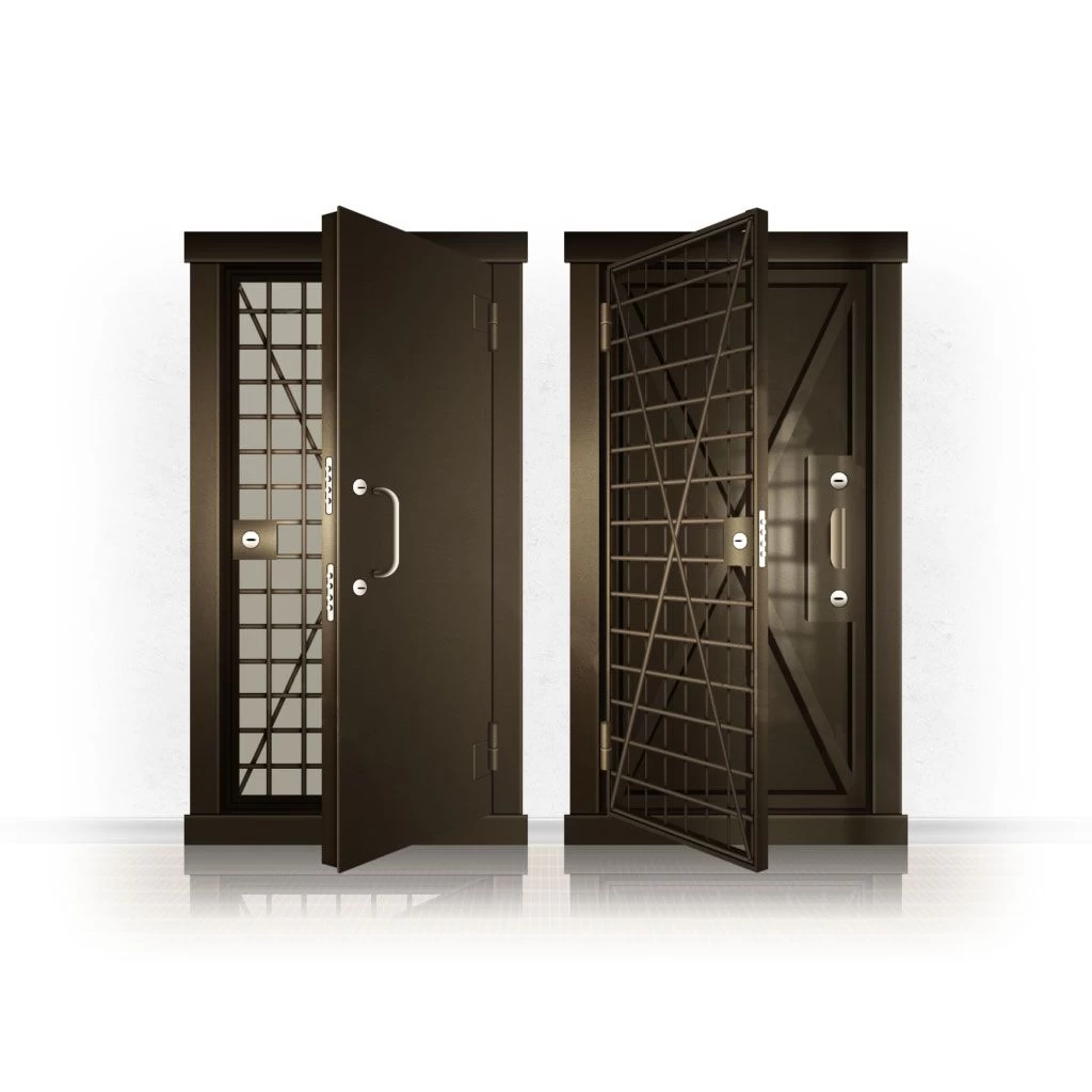 Металлические двери КХО и КХН представляют собой входные блоки, обладающие высоким уровнем взломостойкости и состоят из трех основных элементов: усиленного каркаса, сплошного металлического полотна и решетчатой двери. Дверной блок изготавливается из стального уголка 100*100 мм. Места крепления блока к стене цементируются и закрываются стальными наличниками шириной 40 мм. Крепеж заходит вглубь стены на 80 мм. В конструкции внешней створки монтируются ребра жесткости, для обшивки используется сталь толщиной не менее 3 мм. Внутренняя решетка изготавливается из прутка диаметром 16 мм. Размер ячеек решетки должен составлять не более 15 на 15 см. В точках пересечения прутья надежно приваривают друг к другу. В КХО и КХН необходимо поддерживать определенную температуру и влажность. Для этого внутреннее пространство глухой двери заполняется теплоизоляционным материалом, а по периметру двери приклеивается уплотнитель. Такие двери оборудуются замками с повышенным уровнем взломостойкости. Специализированные двери КХО и КХН в Дудинках могут быть оснащены сигнализацией, в конструкции могут быть проушины для навесного замка и элементами для опечатывания. Если идет речь о двери в комнату хранения оружия, в створке оборудуется окно для выдачи оружия и спец. средств, которое накрывается стальной дверцей.